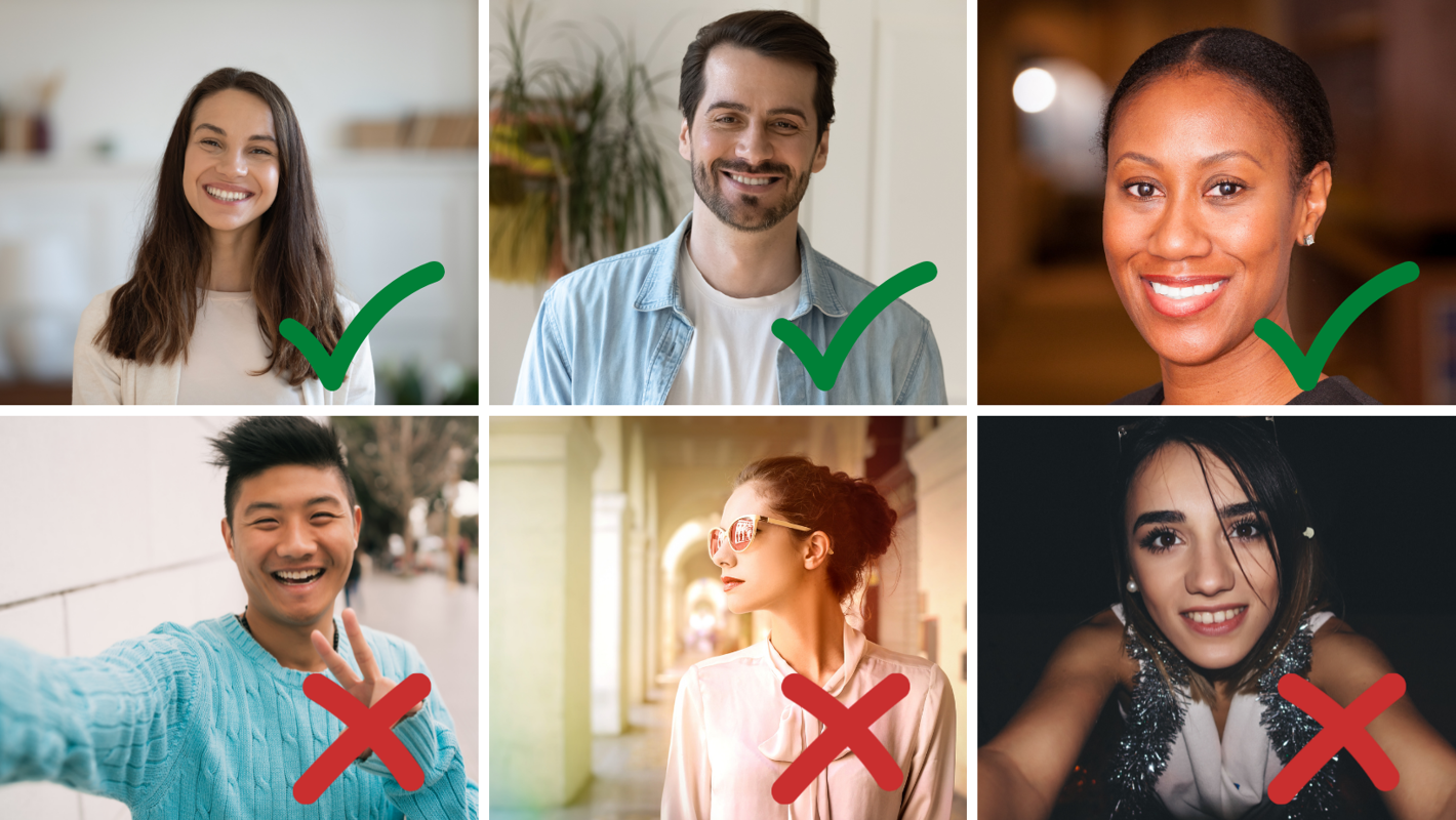 Smil og se imødekommende ud, og undgå festbilleder og selfies.